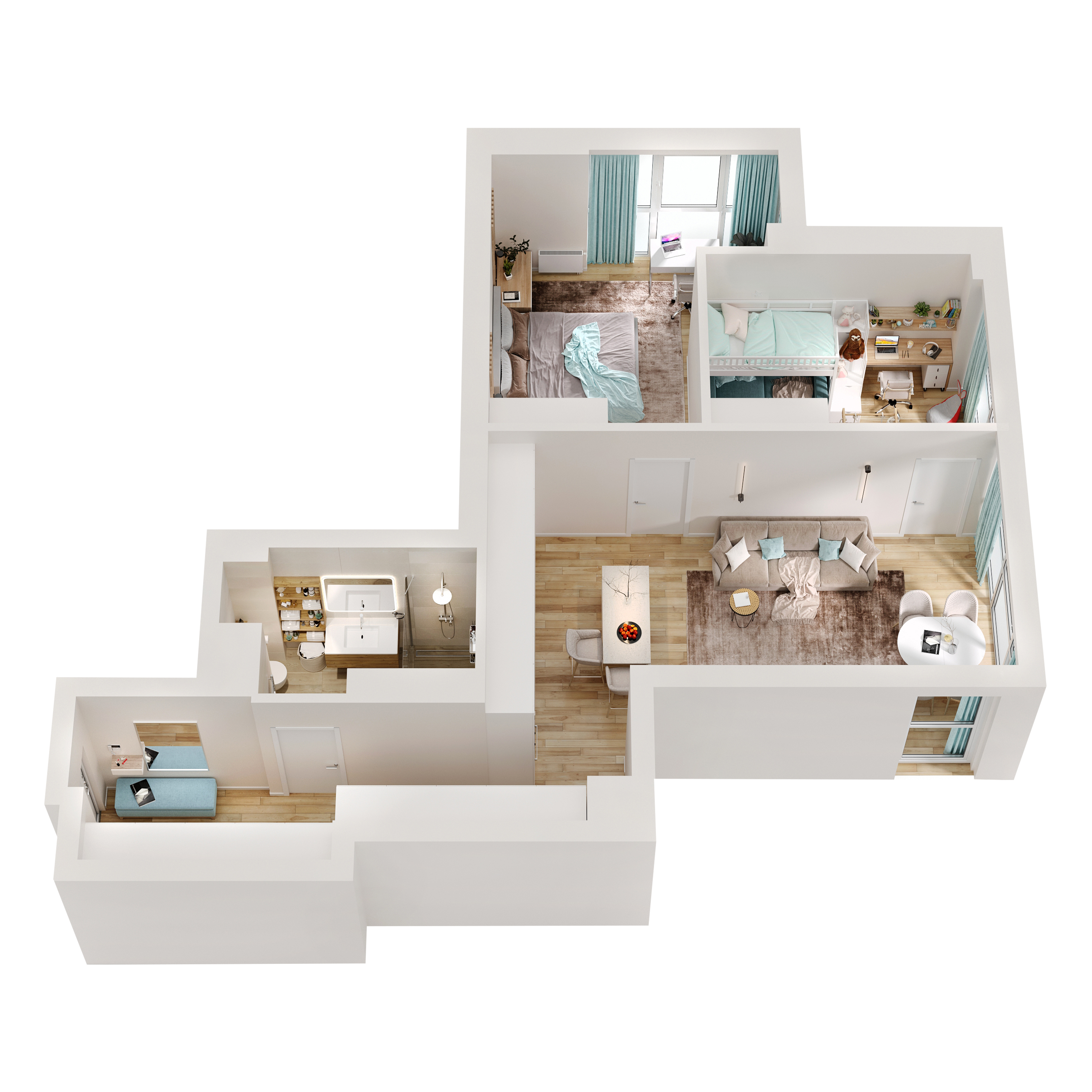 Showcase the entire layout and flow of your space with high-quality floor plan 3D renderings.